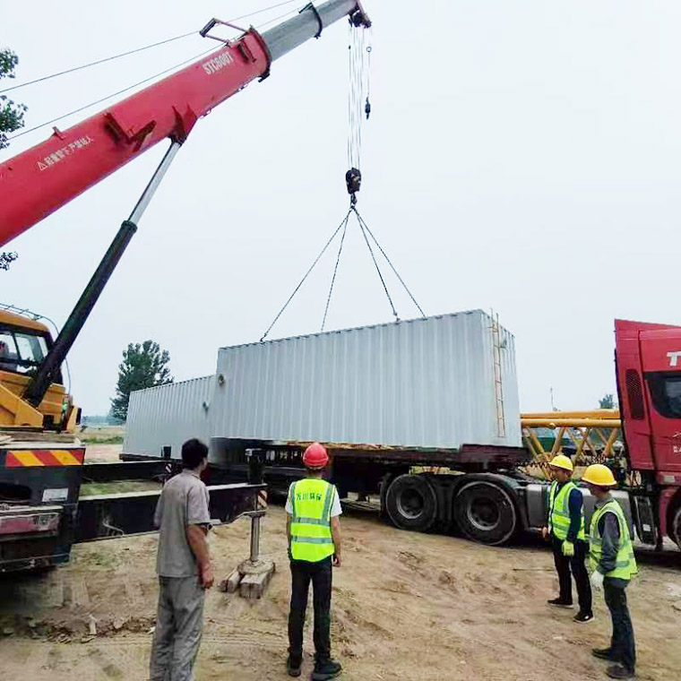 2023年(nian)6月17日隂雨(yu)緜緜,由我司提供建造的8檯一體化汚水(shui)處(chu)理設備全(quan)部順利到(dao)達商坵邏崗汚水廠。